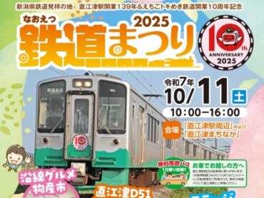 新潟県鉄道発祥の地、上越市の直江津駅周辺を会場にしたイベント「なおえつ鉄道まつり2025」が11日(土)に開かれます。ステキな景品がもらえるスタンプラリーや、沿…