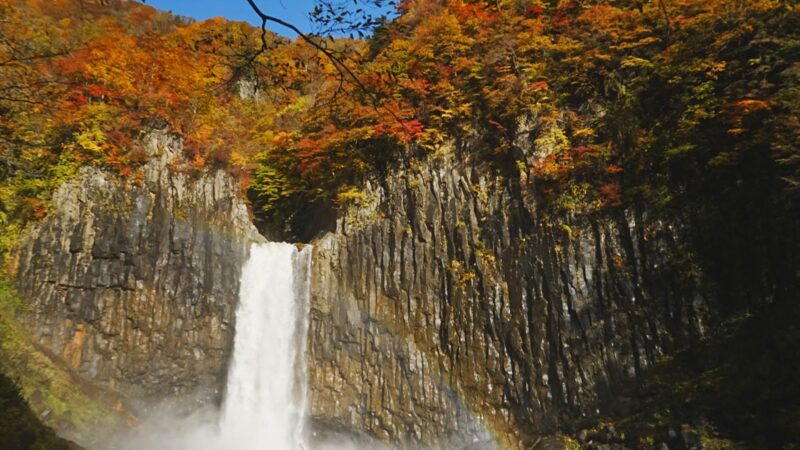 新潟県と長野県の境、妙高市杉野沢を流れる関川にかかる「苗名滝」、2日(日)の様子です。滝周辺の紅葉は一気に色付きが進み、見ごろを迎えています。駐車場から滝までの道のりは足場が悪く、ぬかるんだところもあり、滑りやすくなっています。時間に余裕をもって、足元に注意してください。