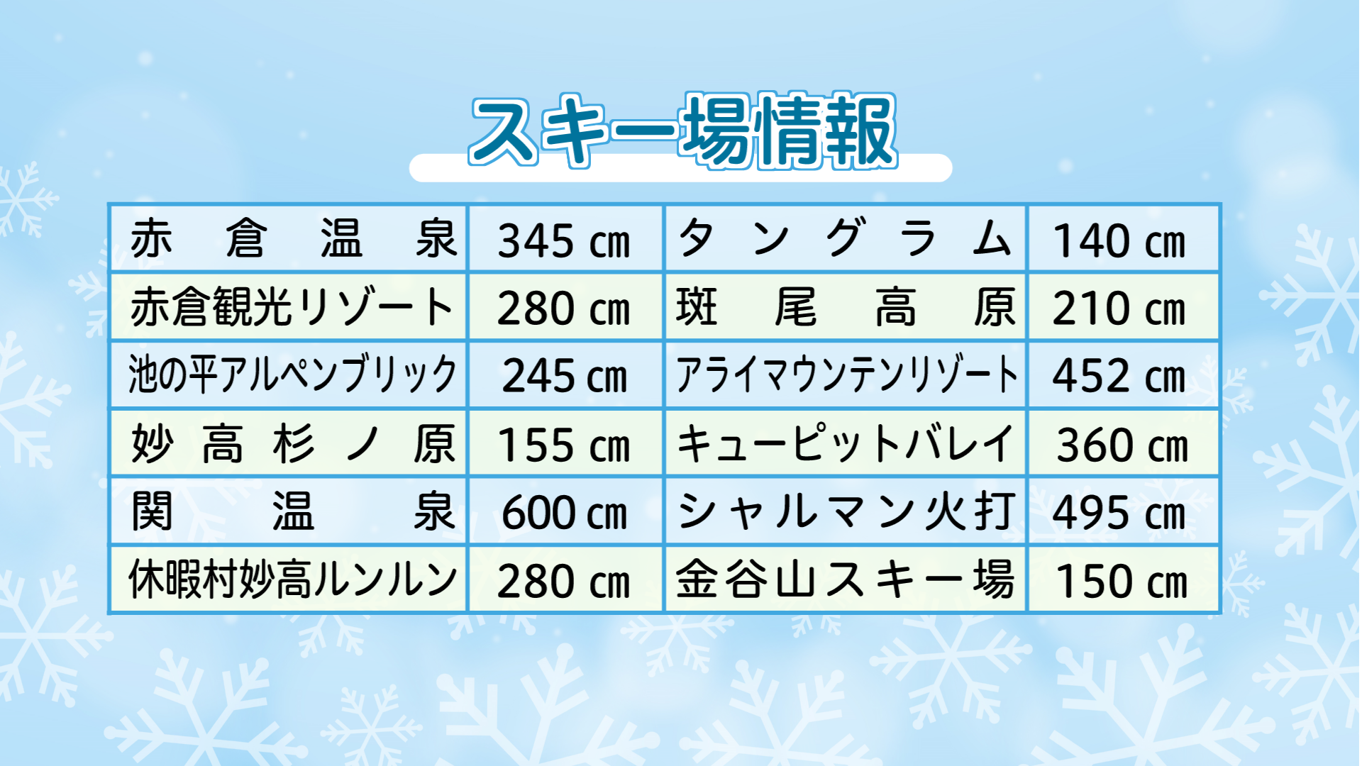 上越妙高エリアの各スキー場の積雪は下記の通り(2月17日 午前 現在)