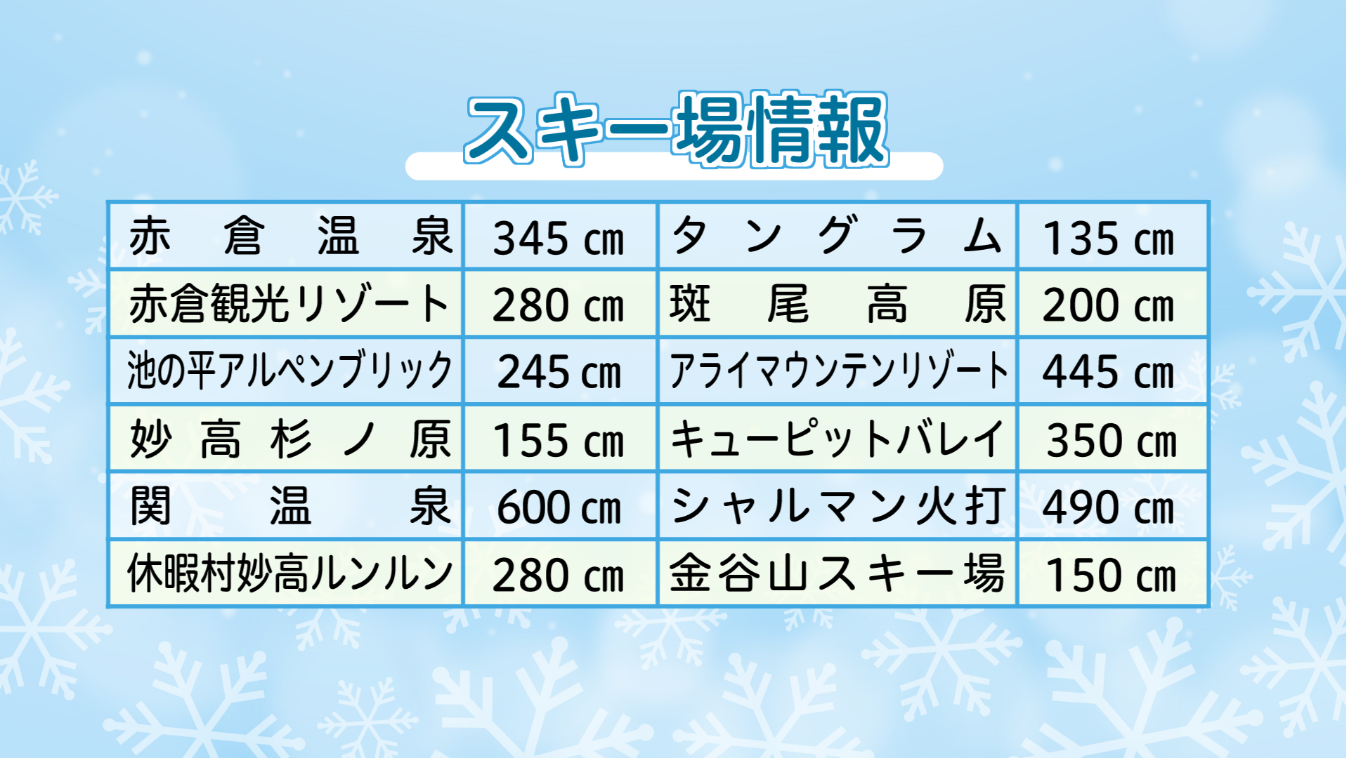 上越妙高エリアの各スキー場の積雪は下記の通り(2月18日 午前 現在)