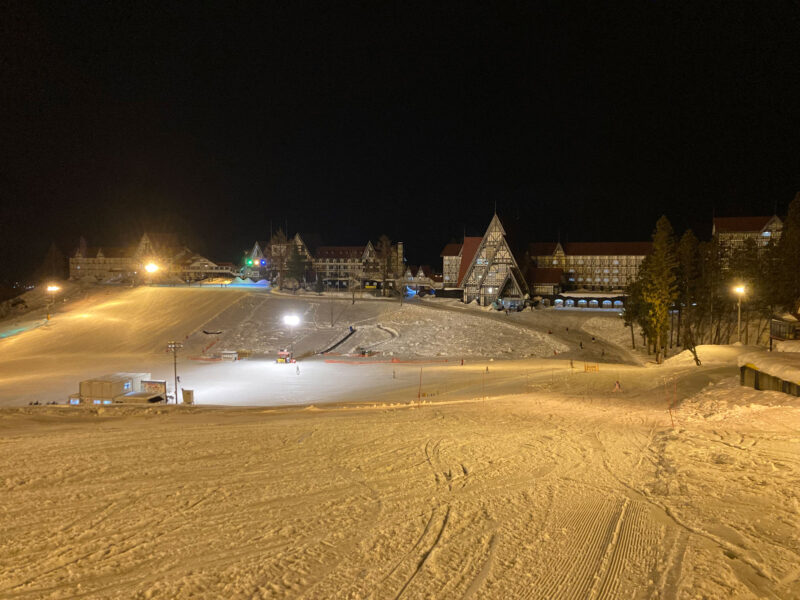 上越国際スキー場のシンボルといえるホテルグリーンプラザ上越の前に広がる「マザーズゾーン」は、初心者やファミリーにオススメ。