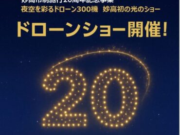 新潟県妙高市の市制施行20周年と妙高市の複合施設「まちなか+」の開館を記念して、妙高市でドローンショーが10月4日(土)の午後7時から開催されます。 当日は30…