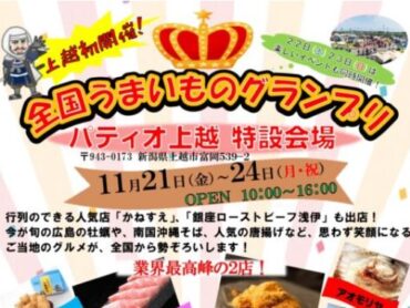 全国のご当地グルメや行列店の味が一堂に集まるグルメイベント「全国うまいものグランプリ」が11月21日(金)~24日(月)までの4日間、新潟県上越市富岡のパティオ…